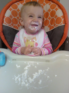 This little kid gets cuter EVERY DAY. She has recently discovered that she has eight adorable teeth and wants to show them off, so she has arranged herself a new smile. By far her cutest time of the day, though, is when Nate leaves for work and when he comes home. We'll say goodbye to him at the door, then rush to the window so see him off. She'll stand on top of the couch and squeel and scream at him while waving bye-bye. Then after work I'll see him pull up and we'll do it all again. We're working on getting a video of it, but of course she turns off the cuteness when that light starts to flash.